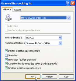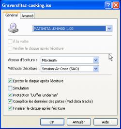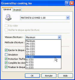 Suivant le type d'image, DVD ou CD, que vous vouler graver, les vitesses de gravure proposées ne sont pas idendiques.