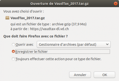 Avec la souris, cliquez avec le bouton de droite sur le fichier VaudTax_xxxx.tar.gz que vous venez de télécharger, puis choisir 'Extraire ici'.